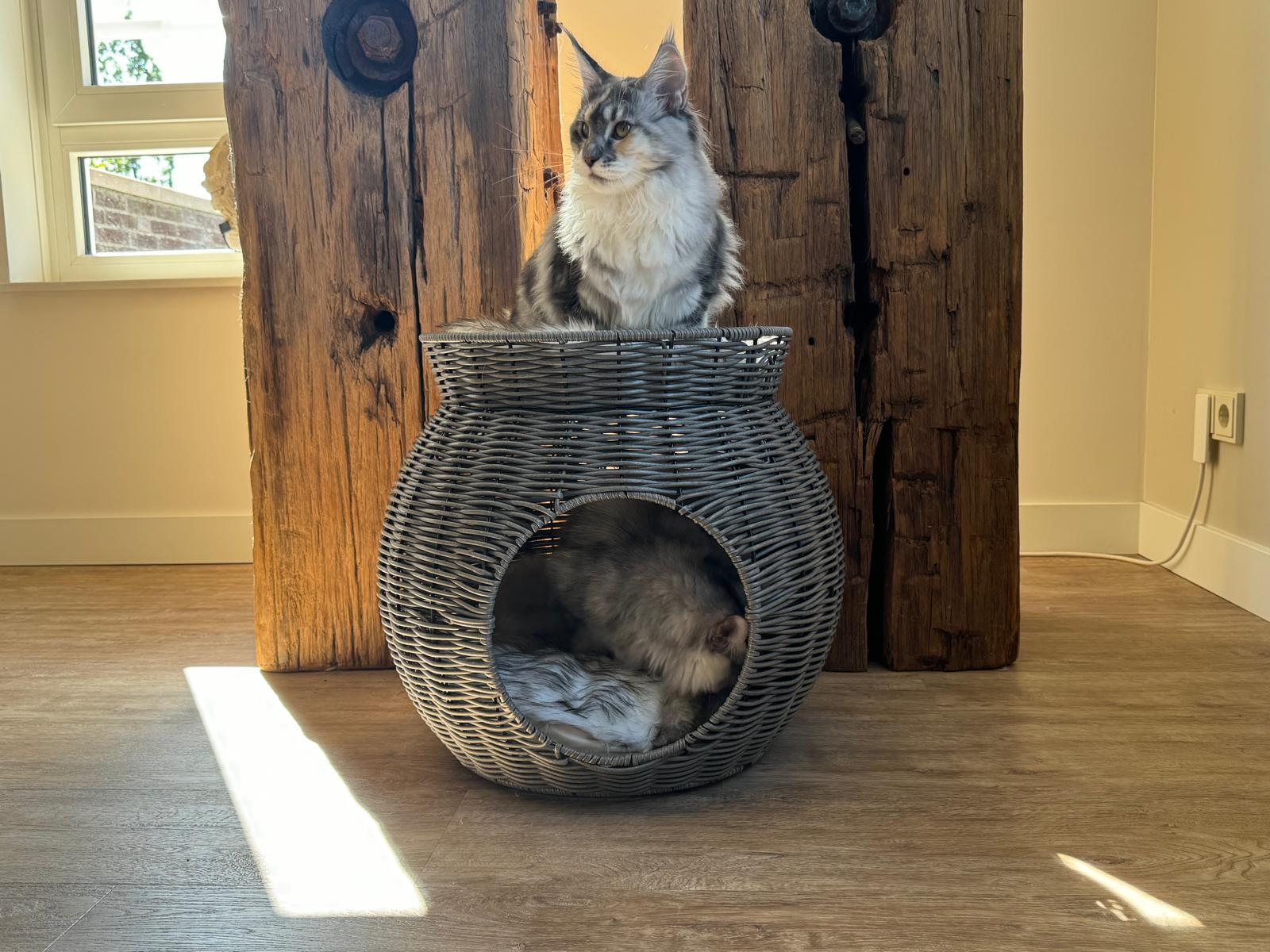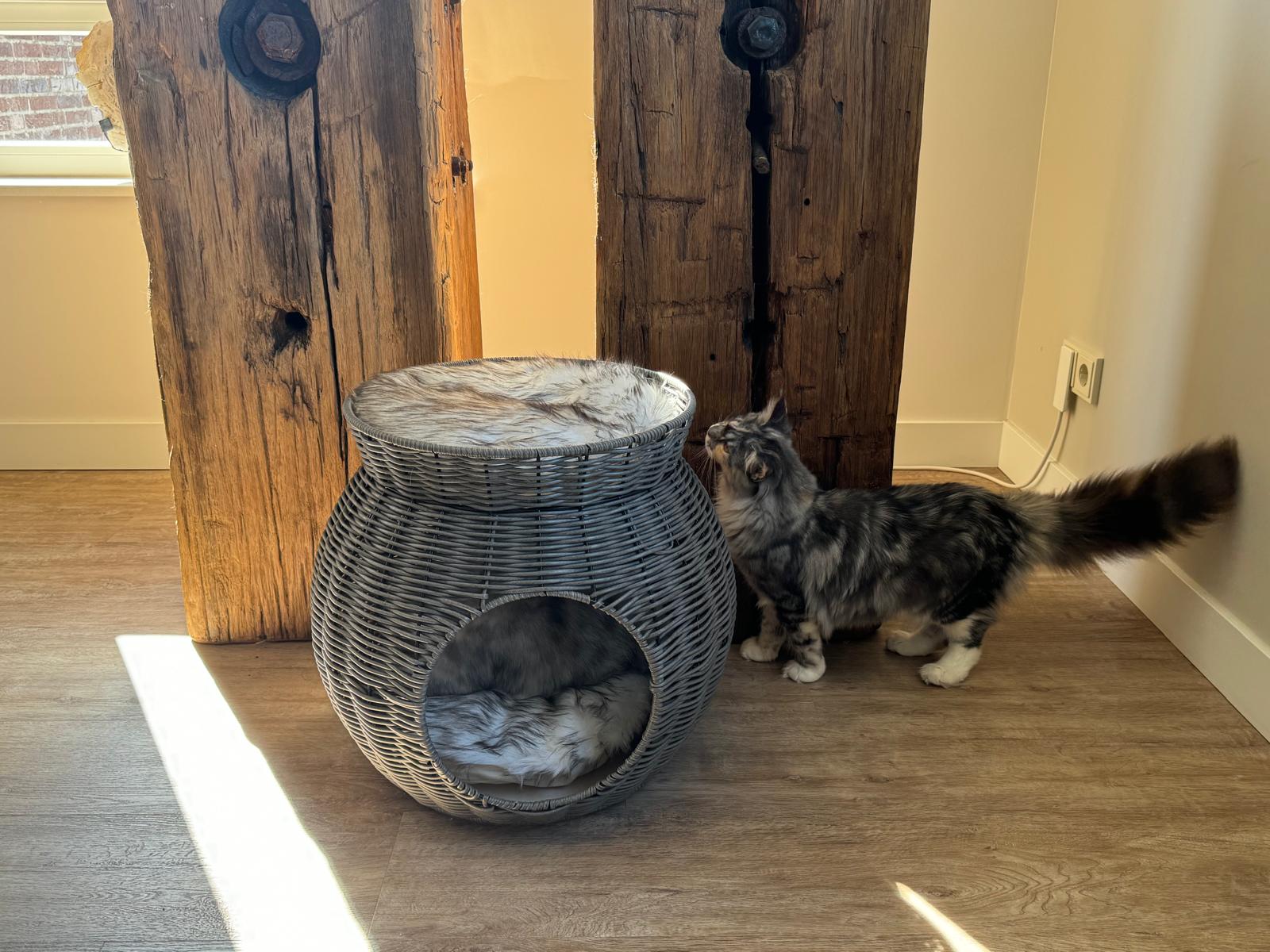 Geben Sie Ihrer Katze den Luxus und Komfort, den sie verdient, mit diesem doppelten Katzenbett aus Rattangeflecht. Mit zwei wunderbaren Schlafplätzen und einem schönen Design ist dieses Katzenmöbel nicht nur ein Liebling Ihrer Katze, sondern auch eine wertvolle Ergänzung für Ihr Zuhause. Machen Sie Ihr Haus mit diesem einzigartigen und vielseitigen Möbelstück zu einem Zuhause für Ihre Katze!