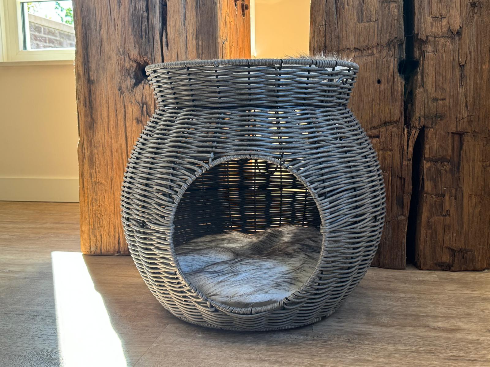 Geben Sie Ihrer Katze das Beste aus beiden Welten mit unserem geflochtenen Doppel-Rattan-Katzenbett