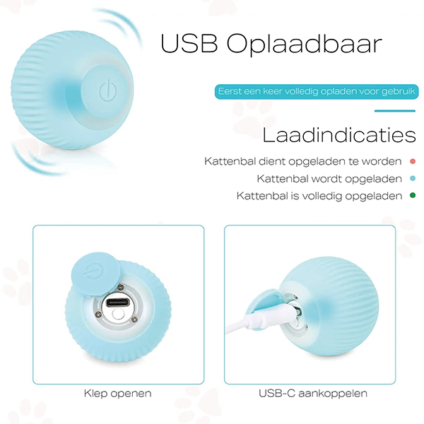 Onze slimme speelbal is ontworpen om automatisch te bewegen en onvoorspelbare stuiter patronen te creëren, wat je kat keer op keer zal blijven uitdagen en vermaken. De bal beweegt continu en verandert van richting bij obstakels of krappe hoeken. Dankzij de verlichting wordt het spel nog spannender en leuker. Geen zorgen meer als je even druk bent, jouw huisdier vermaakt zich met gemak.